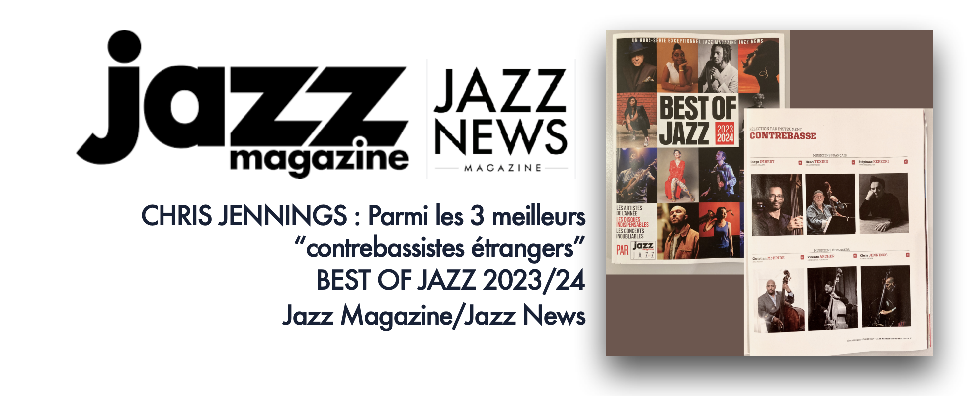 Installé à Paris depuis 2002, le contrebassiste canadien CHRIS JENNINGS s’est fait connaître en jouant aux côtés de grandes figures de la scène jazz et musique du monde actuelle. On a ainsi pu l’entendre aux côtés de Dhafer Youssef et son album Abu Nawas Rhapsody avec Tigran Hamasyan et Mark Guiliana. Il accompagne le guitariste Nguyên Lê depuis plusieurs années : "Streams Quartet", "Fire & Water Trio », pour les formations les plus récentes, mais également un quartet avec Rita Marcotulli et Danny Gottlieb ou encore avec Karim Ziad & Bojan Z. Il a également joué avec le virtuose du ney turc, Kudsi Ergüner, et dans le trio jazz de Thomas Enhco. Il est le bassiste du "New Trio" Joachim Kühn, du trio de Gregory Privat, du "Nargis Trio" Titi Robin, du "DAT" trio de David Aubaile aux côtés de Karim Ziad, de l’orchestre traditionnel algérien chaâbi "El Gusto ». Il fait aussi partie du quartet de Céline Bonacina featuring Gwilym Simcock et de son trio “Fly Fly”. "Drum'n Koto", son 7e album en tant que leader, où il s’est entouré de la joueuse de koto japonais Mieko Miyazaki et de Patrick Goraguer à la batterie et au santour iranien, a été choisi comme "Disque du Mois" dans Jazz News magazine France. Son dernier album, le Chris Jennings Piano Quartet + qui réunit Patrick Goraguer au piano, Kalle Kalima à la guitare, Eric Schaefer à la batterie, et invité Hayden Chisholm au saxophone, devrait sortir très prochainement.
